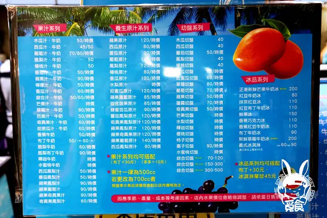果汁牛奶雖然大多寫時價 但大概就是果汁加二十塊左右
