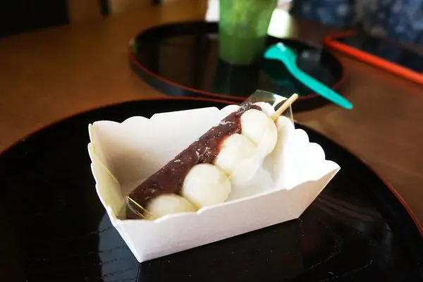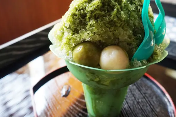 除了一般常見的抹茶霜淇淋、飲品之外,也有販售刨冰、鹹甜口味糰子、鯛魚燒、馬卡龍等等甜食