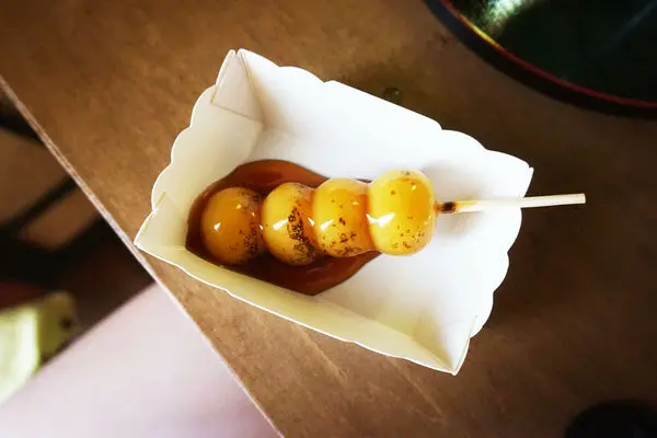 熱呼呼的糰子配上鹹甜的醬油,滋味真是好得沒話說