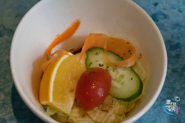 今天吃到的是用香檳酒醋、香油、葡萄柚、蘋果做調味。