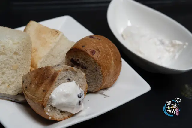 五穀雜糧麵包,口感扎實,麵香十足,抹上由蔓越梅+原味起司製作的抹醬更是美味。