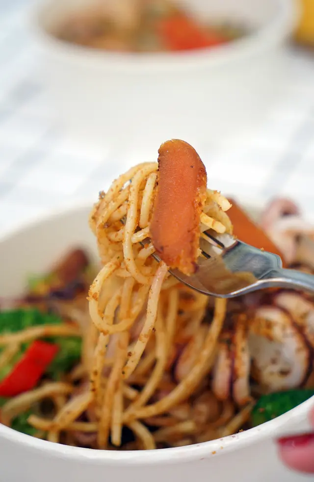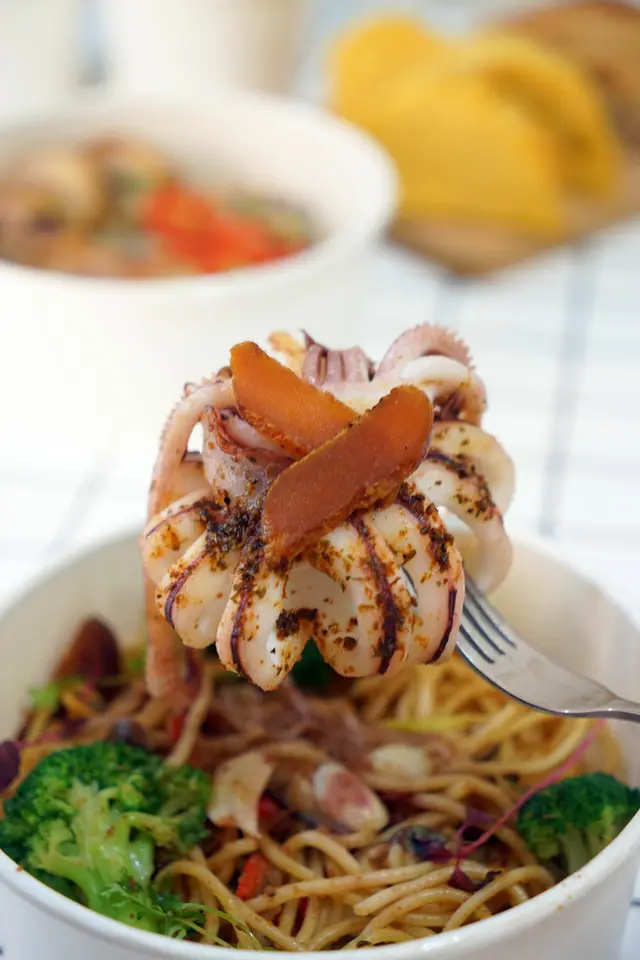 很特別的一道,店家用料非常大氣,是採用鮮嫩的整隻小卷,口感Q彈新鮮。