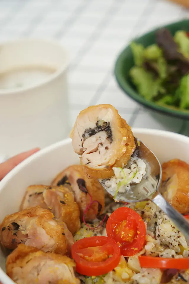 去骨雞肉包裹著松露,能吃到濃郁的松露香氣,與軟嫩雞肉包裹著肉汁。