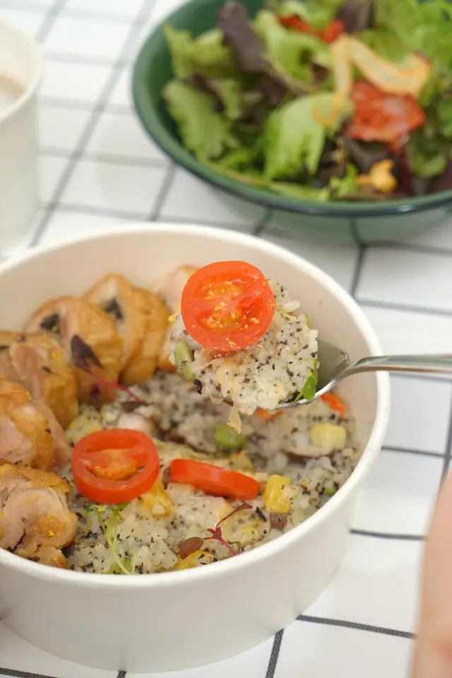 ▼雞肉很嫩不會柴,外皮煎的稍微脆嫩。