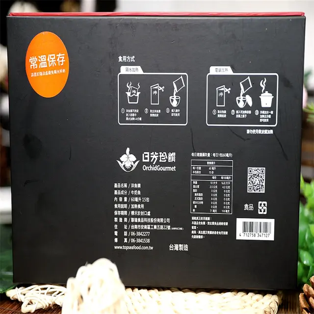 並利用高溫高壓製程滅菌 使淬魚精不添加防腐劑也可常溫存放達24個月之久 讓消費者可隨身攜帶飲用更方便