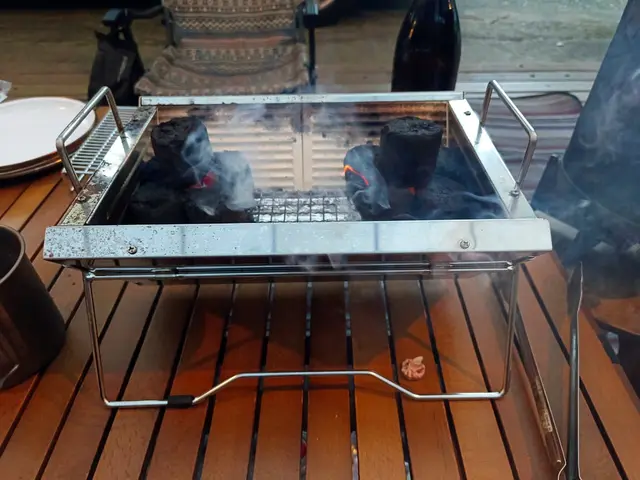 ▼看著美味的食材實在等不及了,先用卡式爐來煎干貝,因為是生食級干貝,所以只要表面稍微變色就可以吃了,有點炙燒的感覺~