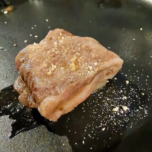 ▼PRIME等級的牛肉,口感超嫩!只需要一點海鹽提味,就能享受到最原汁原味的牛肉美味