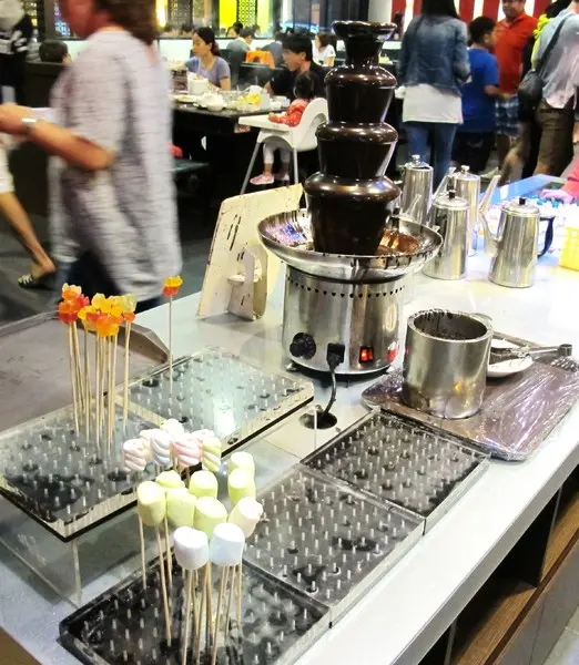 『熔岩火山巧克力DIY甜點區』小朋友的最愛區,才剛補滿,馬上就被搶光光了!