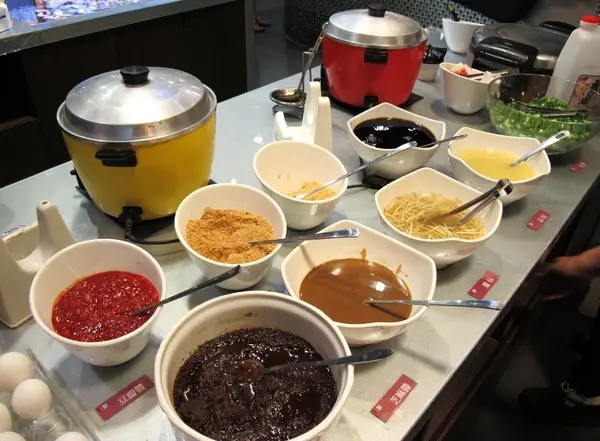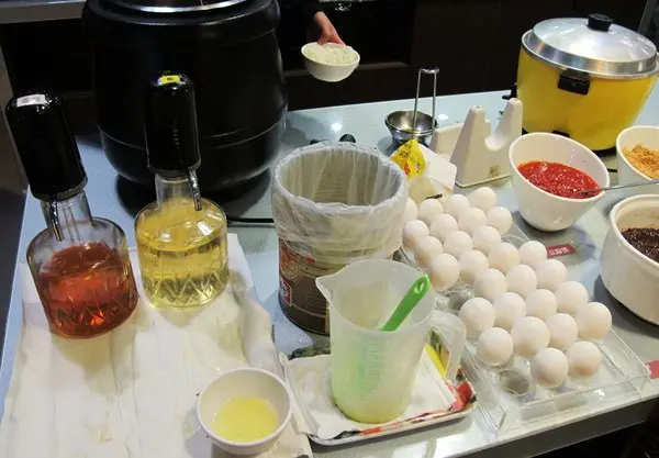 有些人喜歡在佐料上打上蛋黃,增加風味