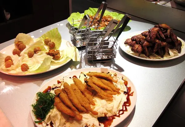 『熟食自助吧』提供了 鴨血。豆腐。肉燥。各式炸物。熟食。