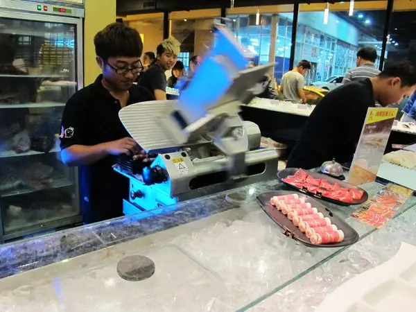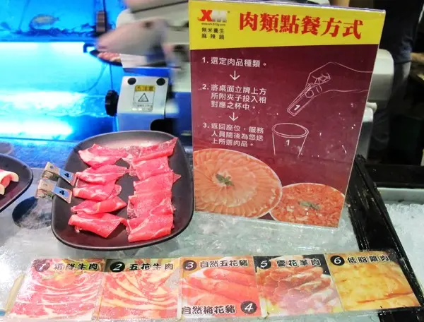 每個餐桌上都有鐵夾,看想吃什麼肉,拿來放在現切肉片區的相對應盤中即可。