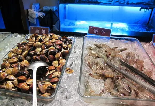 店家貼心的把撈出來的蝦子先用冰塊凍暈,以方便夾取!