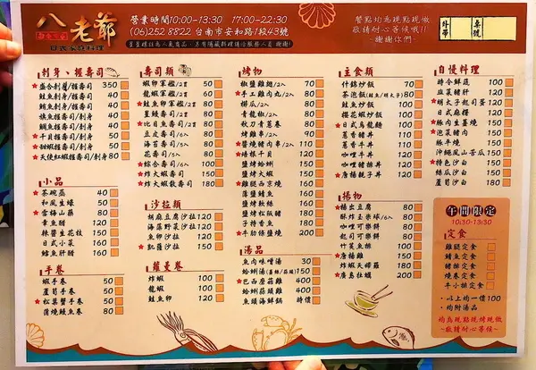 『八老爺吃飽喝足日式家庭料理』菜單: