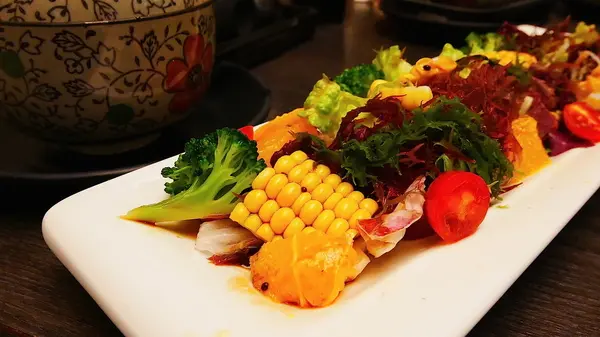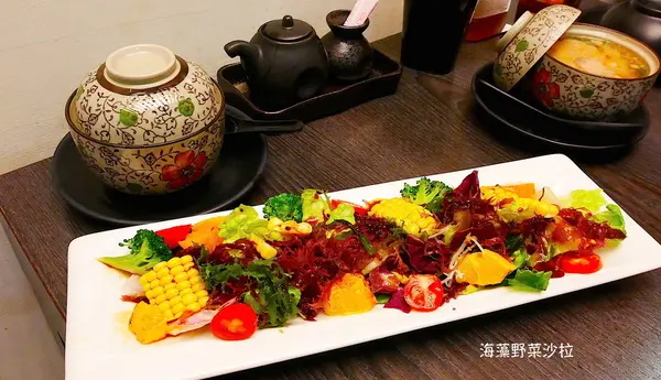 裡面有清脆生菜,新鮮蔬果(綠色花椰菜,香甜黃玉米,番茄,香橙...),各式海藻,非常豐富!
