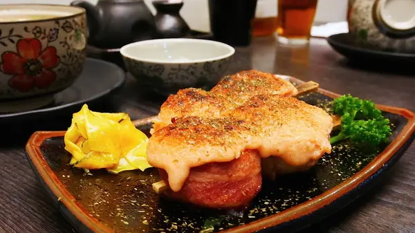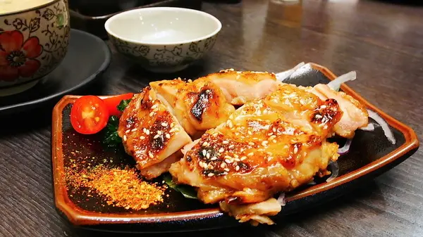雞腿上方塗抹”味噌醬“,然後慢火醬烤的很入味!味道非常香甜,又帶有芝麻香,感覺很下飯呢!