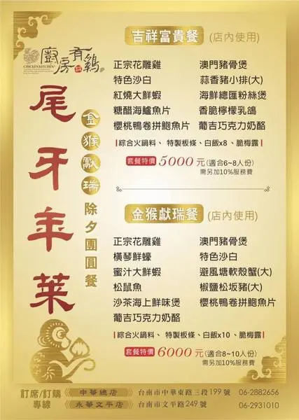 接近年末的尾牙除夕,店家也推出了優惠團圓年菜。