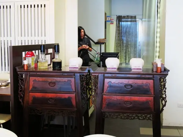 「廚房有雞」餐廳後方有一排古風高櫃。
