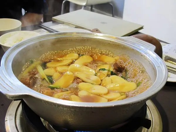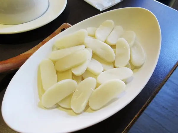 醬汁稍微收乾後,服務生就把 年糕加入!