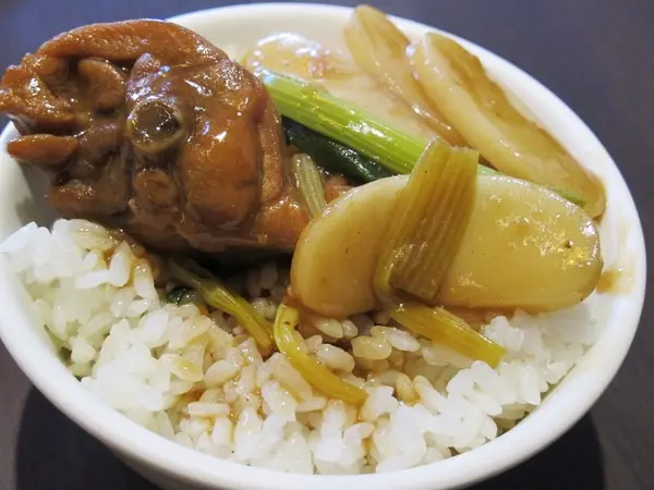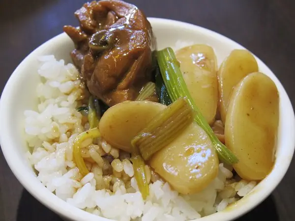 瞧瞧!白飯淋上醬汁,有『正宗花雕雞』和年糕的模樣!