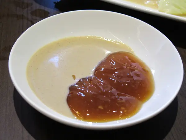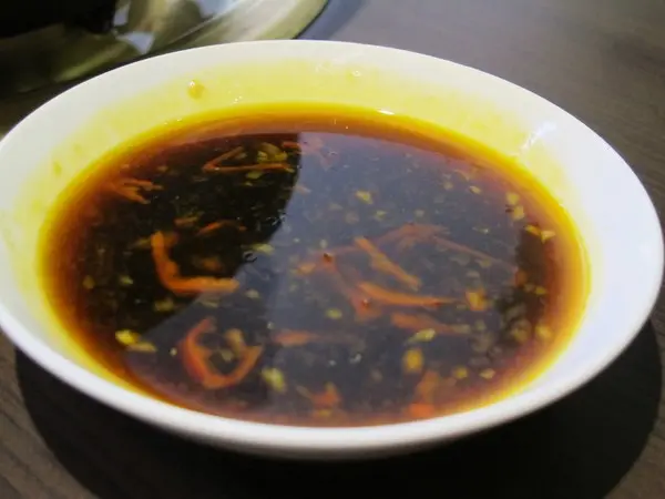 店家後來送上『正宗花雕雞』的自製自調沾醬。