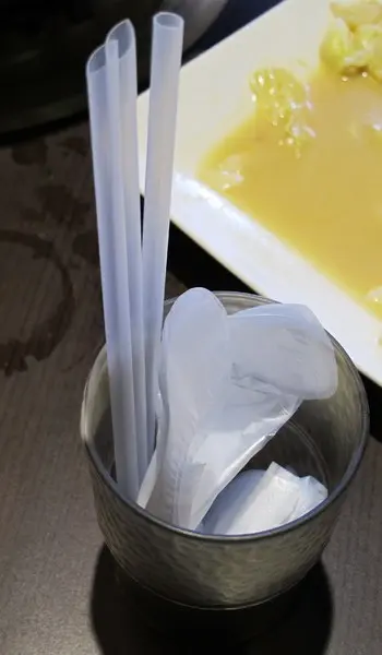 點用『澳門豬骨煲』,店家貼心地給予手套和吸管。
