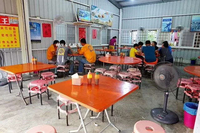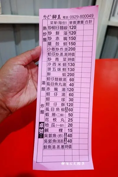 七股龍山宮這裡,有好幾家小吃店,沿途也可以見到剖蚵的畫面,來【ㄌㄜˋ腳王】用餐,可以將車子停在漁會活動中心空地,過馬路就到了!