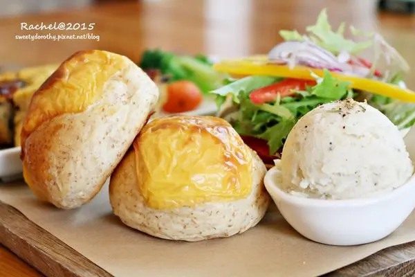 兩種餐點都有附麵包,義式烘蛋有附薯泥,歐姆蛋則附南瓜泥,麵包軟Q好吃,薯泥和南瓜泥用料實在,都能很明顯吃出裡面原食材的口感。