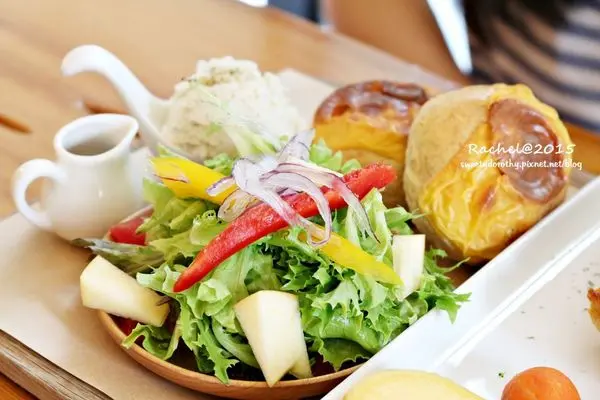 有附油醋醬,酸酸好開胃,而且都用深色蔬菜,還附有水果