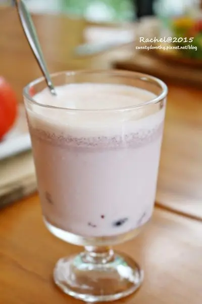 口感跟一般喝到的鮮奶有點不太一樣,有點像是優酪乳的感覺,還不錯喝,只是送上來的時間點是在主餐之後,好像有點衝突XD