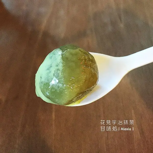 一旁的抹茶白玉帶有淡淡的抹茶香氣,Q彈好吃