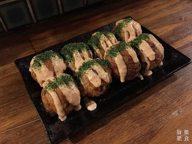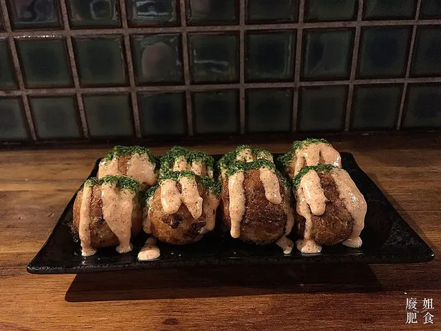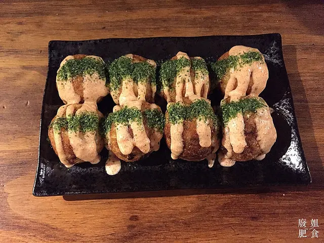 ▲ 送上桌八顆渾圓又大顆的章魚燒,擠上明太子美乃滋、撒上海苔粉,香噴噴讓人流口水