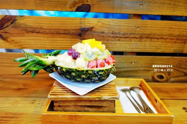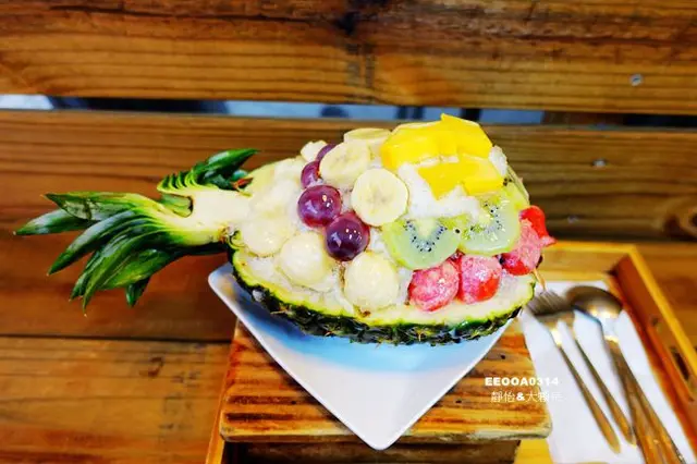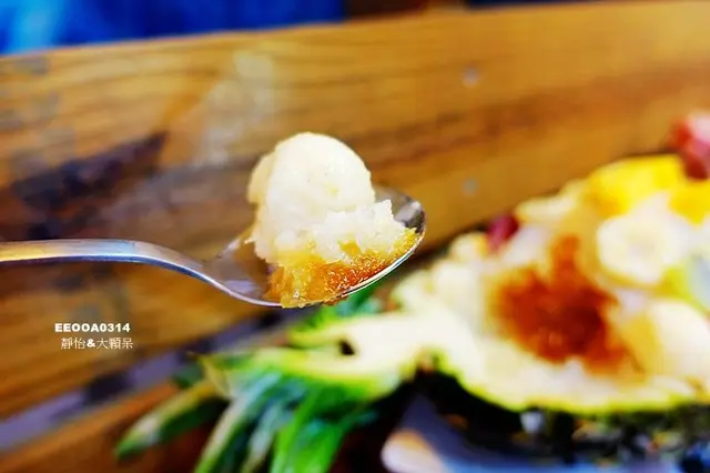 原來這白色的球型是鳳梨,原本我還沒想到這是鳳梨耶,因為使用的是品質比較好的牛奶鳳梨所以是白色的..牛奶鳳梨吃起來甜蜜蜜,完全沒有酸味,像我一樣不愛吃酸的也可以大口品嚐