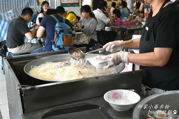 工作人員頂著豆大的汗珠,一刻不得閒的舀著一碗接著一碗的小卷米粉,迅速消化大排長龍的饕客。