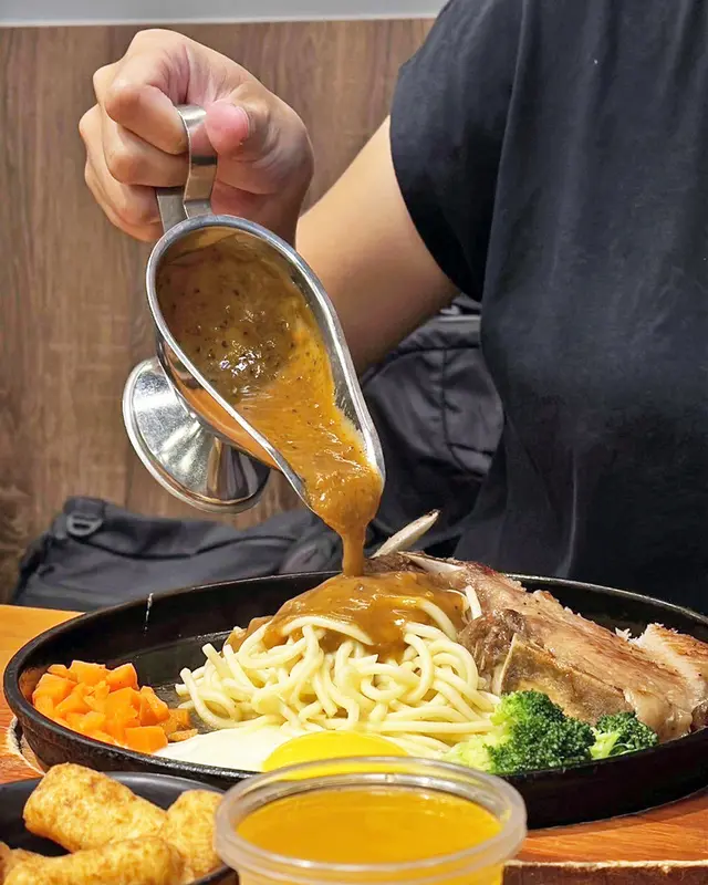 魔力牛排餐各有特色,從精緻的菲力牛排到份量十足的雙拼,再到海陸雙拼的自由組合,以及霸氣十足的戰斧豬排,蛋白質與碳水的聯合雙打(原塊肉與鐵板麵餐包),是連一滴醬汁也不會放過的完食!吃得一乾二淨啦!