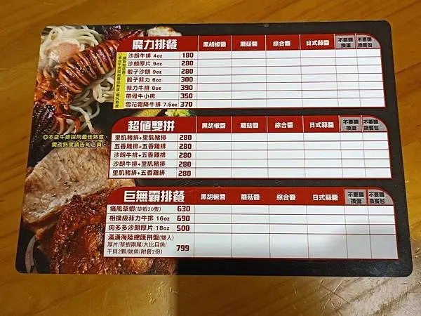 雞排、豬排、牛排到海鮮料理通通有,想要什麼雙拼也都一應具全,真的是非常多元