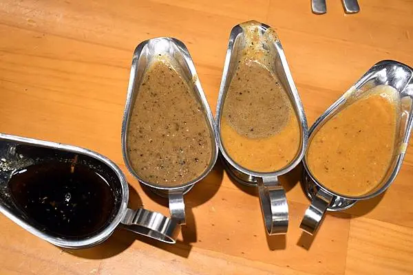 日式蒜醬、黑胡椒醬、綜合醬、蘑菇醬都很好吃