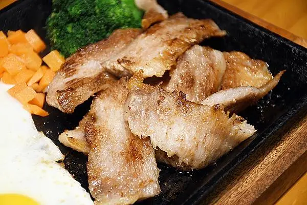 帶有豐富的油脂,在鐵盤上噗滋作響