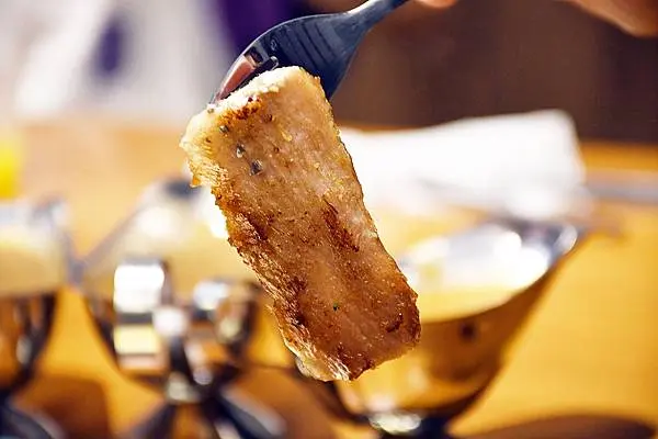 恰到好處的熟度讓四周圍帶有脆口感,而切的剛好的厚度吃起來口感十足