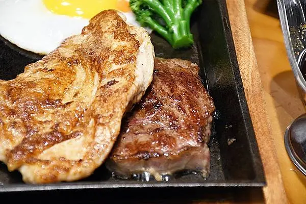 這價格真的太佛心了吧!非常大塊的雞腿排配上嚴選的沙朗牛排,以夜市、平價的價格,提供物超所值、超凡的享受