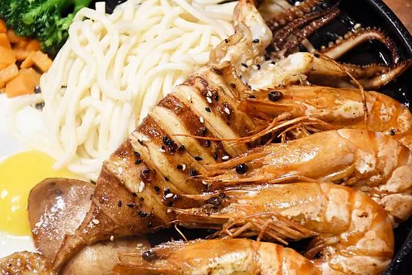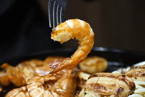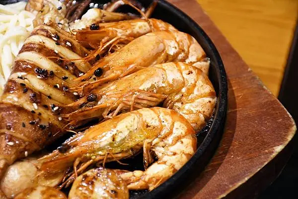 單吃就能吃到蝦肉的甜味,鐵板更是讓它多了幾分香煎過的香氣