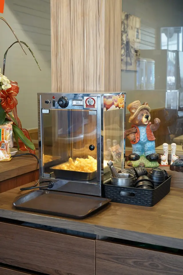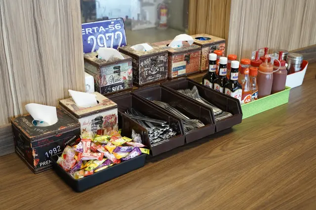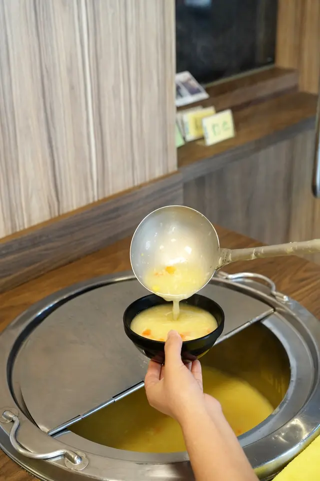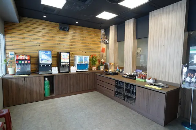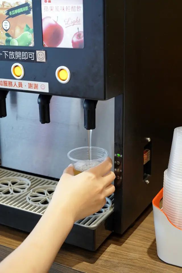 ▼店內的裝潢以簡約明亮為主,寬敞的用餐空間讓人感到十分舒適。自助吧檯上提供各式飲料、玉米濃湯、零食餅乾等,可以無限享用