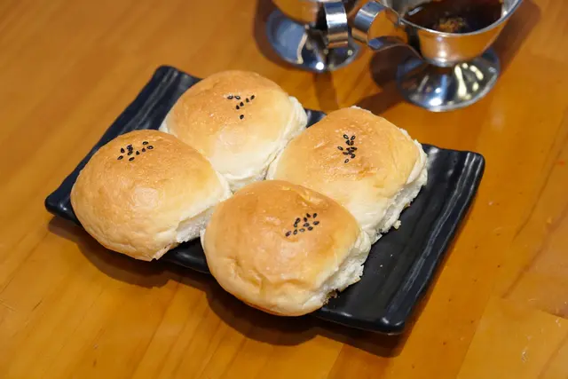 點完餐入座後,店員先送上醬汁和奶油餐包。