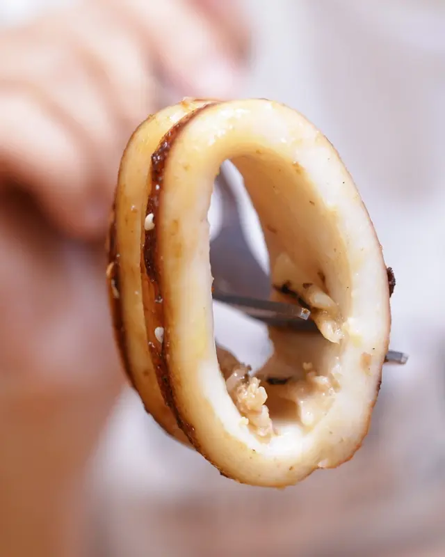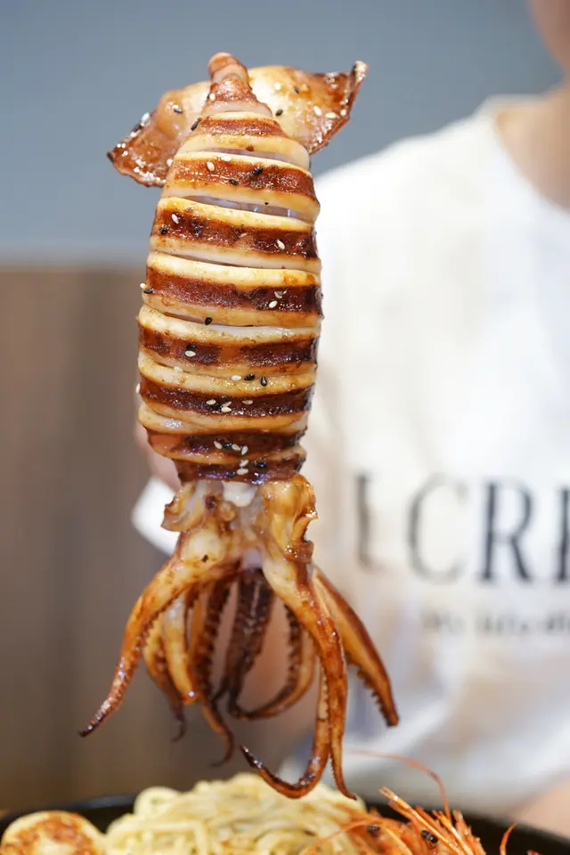 魷魚更是一整隻!還是不小一隻,而且是肥厚的~口感爽脆又嫩,越嚼越有味道。