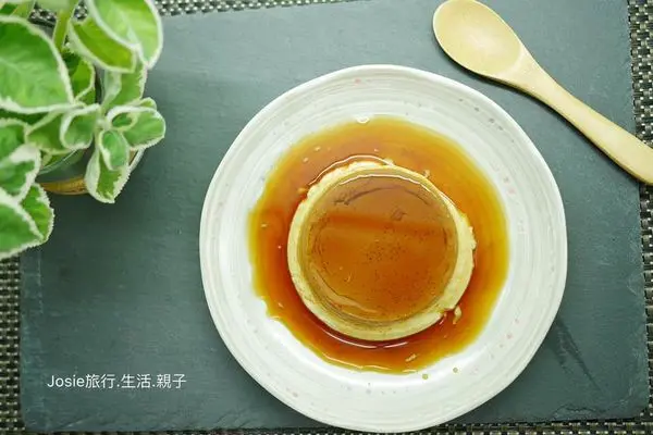 將布丁倒於盤中,除了底部的焦糖布丁體,還有令人垂涎欲滴的焦糖糖漿流出…