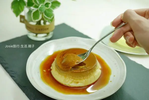 以雞蛋、鮮奶為主要原料製成的焦糖布丁,有著醇厚的蛋奶香,搭配微苦帶甜的焦糖糖漿,不會過於死甜,細緻的口感很討人喜歡!