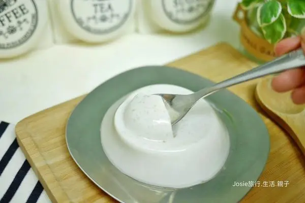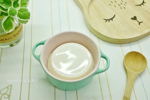 絲滑柔順的口感,甜中帶著奶香氣,很適合切點水果丁放上,是讓小朋友當下午茶點亦或是飯後甜點的好選擇~