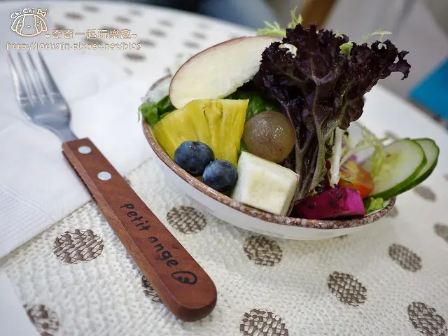 沙拉的部分很豐盛,許多新鮮水果還有剝好皮的葡萄呢!