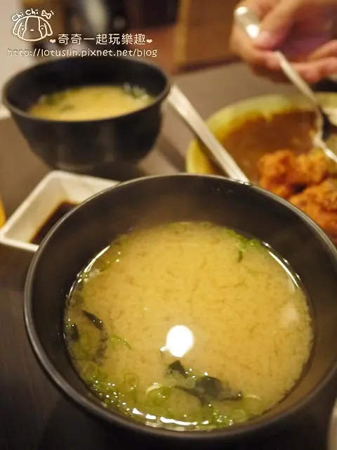味噌湯更是單薄,裡頭只有少少的海帶芽。
