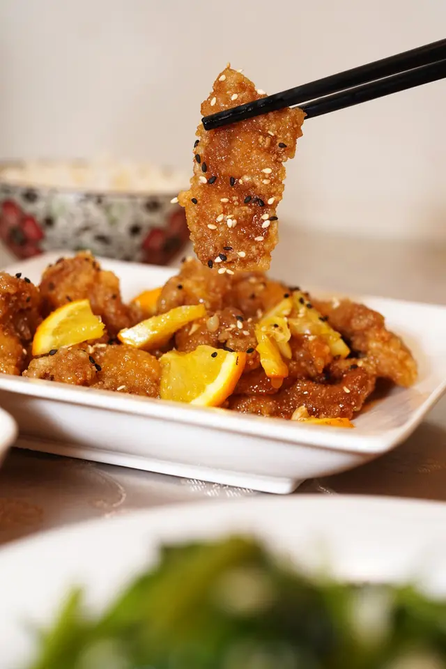 排骨炸得金黃、很酥,橙汁香氣濃郁,光聞到就餓了!