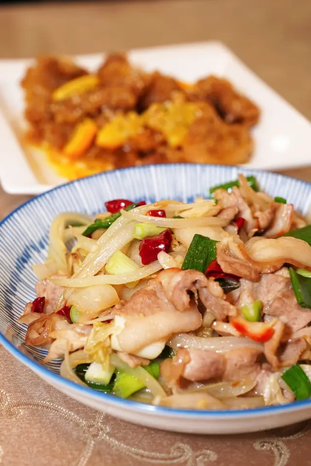 豬五花肥瘦相間,酸白菜酸而不嗆,兩者搭配非常合拍。同行朋友有人很喜歡吃酸白菜,所以這道菜她非常喜歡。豬五花的油脂被酸白菜的酸味中和,很爽口,吃起來一點也不膩。